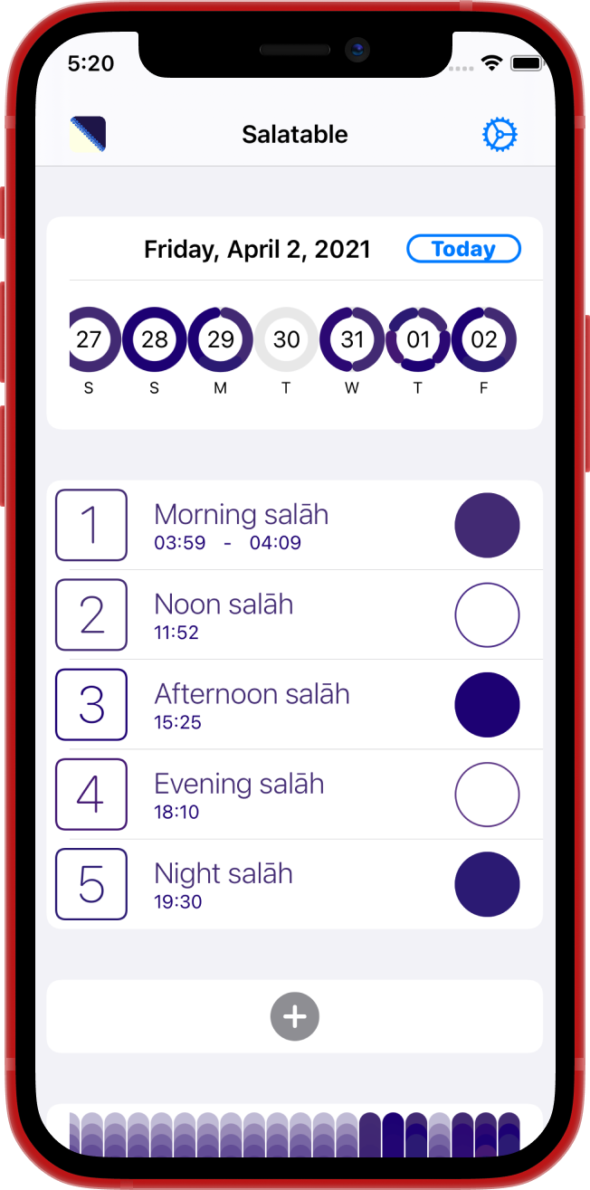 Salatable is a salah routine app. With it, you can build and maintain a healthy salah routine that lasts.